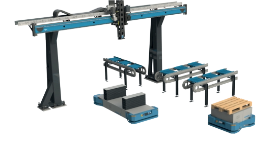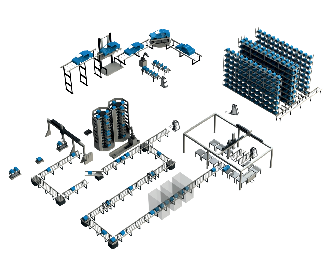 Rollenbahnen, Roboter und Montagesysteme.